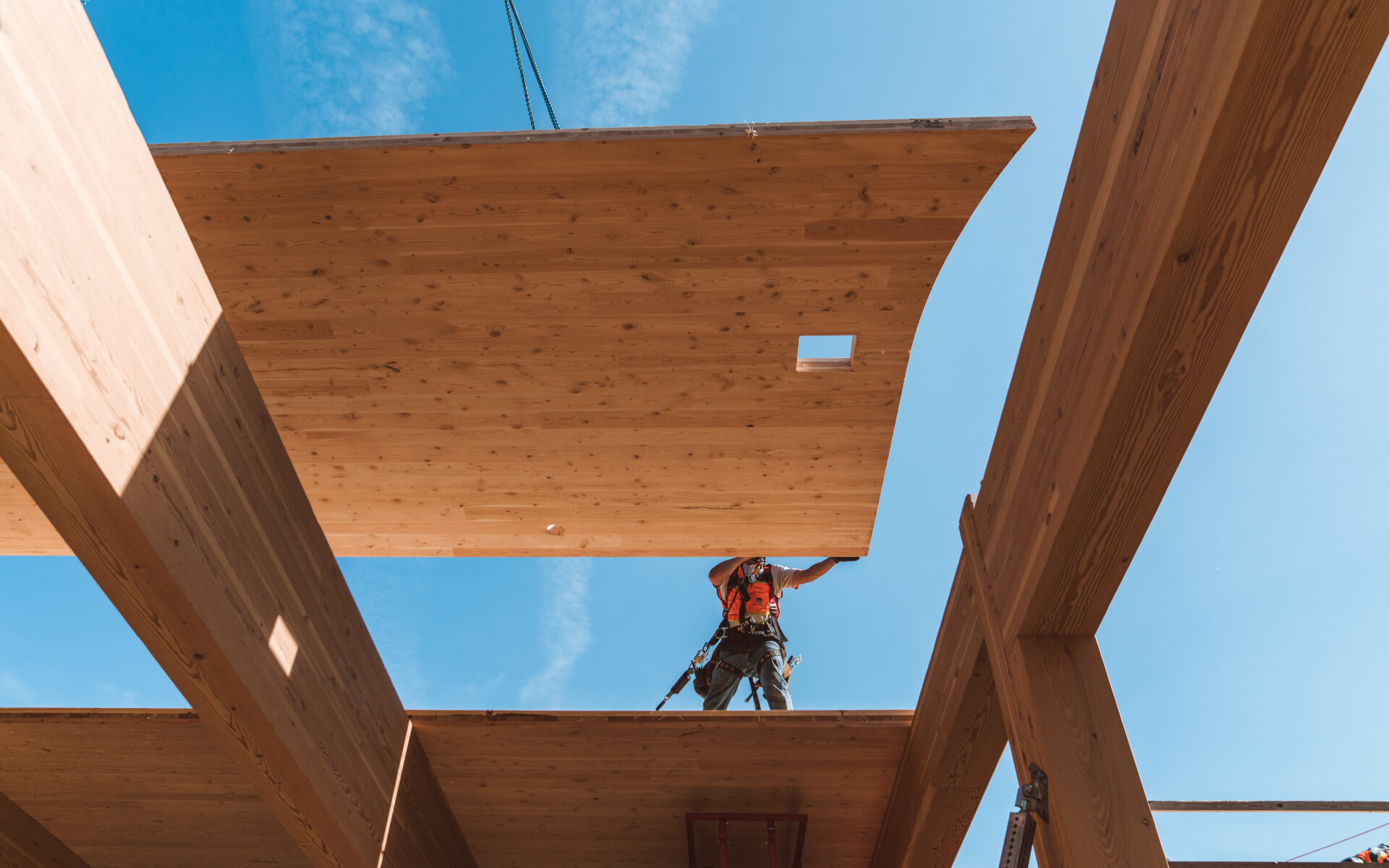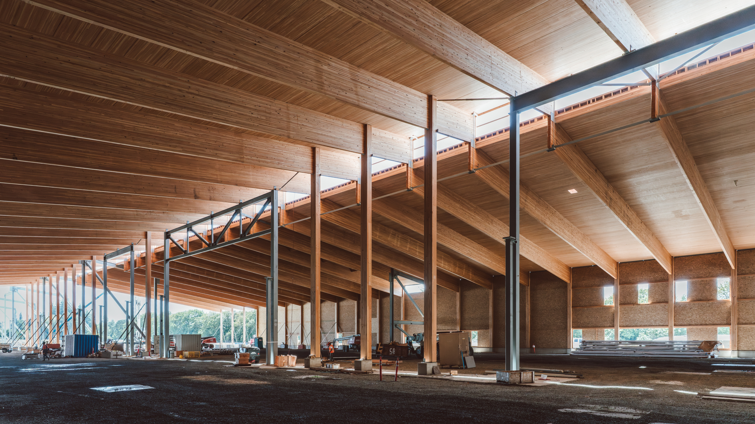 Cross-laminated timber (CLT) is at the core of Timberlab’s mission in delivering high-performance, prefabricated mass timber building systems for projects across North America. Timberlab’s Independence Hall CLT manufacturing facility in Millersburg, Oregon, represents a major investment in expanding North America’s mass timber supply chain. Designed by LEVER Architecture and built in collaboration with project partners across the Swinerton ecosystem, the approximately 190,000-square-foot facility stretches nearly the length of three football fields and stands among the largest CLT production sites in the United States. Located in the Willamette Valley—the heart of the Pacific Northwest’s timber economy—the project reinforces Oregon’s role as a global hub for mass timber innovation while strengthening the region’s vertically integrated wood products industry. When operational, the plant is expected to produce 7–9 million square feet of CLT annually, supporting a rapidly growing pipeline of mass timber projects across the western United States and beyond.