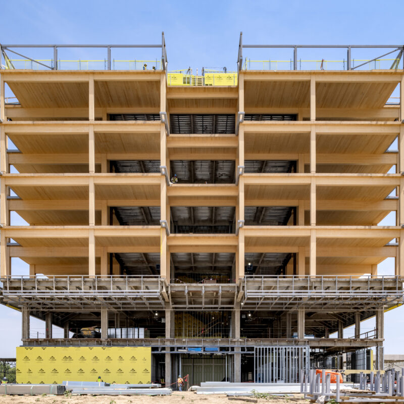 Our custom mass timber fabrication team brings the architect's vision to life by transforming commodity products into custom building components that are easily assembled on-site. Our CNC machines are customized to process the member sizes needed for long-span office buildings and tall timber buildings. To meet the growing needs of the industry and to alleviate pinch points in supply, Timberlab is expanding its production capacity to reach the needs of every U.S. domestic market.